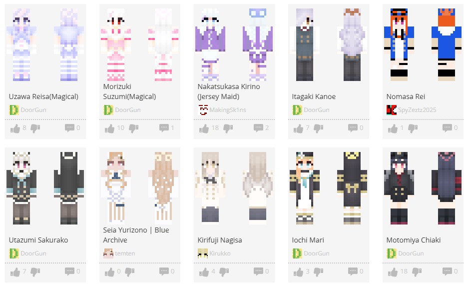 - ブルアカスキンは Nova Skin や Planet Minecraft など海外サイトが豊富。