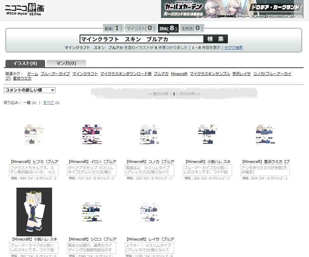 - 本来はイラスト投稿サイトですが、スキンデータも共有されることがあります。