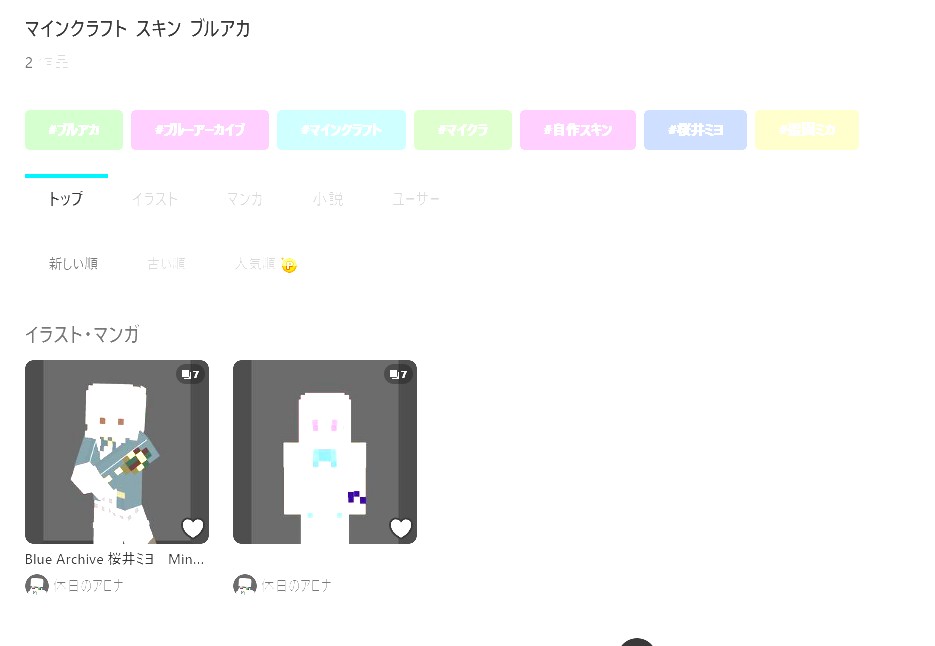 - ブルアカファンアートと一緒にマイクラスキンを探せるのが魅力。