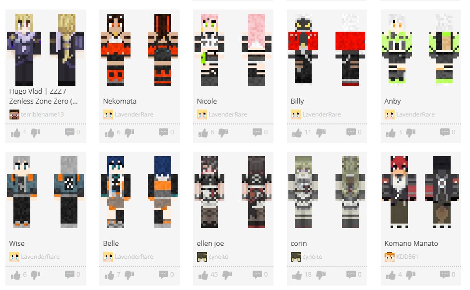 ぜひお気に入りのスキンを見つけて、ゼンゼロワールドをマイクラで体験してみてください!